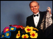 This is a quality effect that offers a beautiful way to produce four large bouquets at any time in your act without body loads, from previously show empty foulard. Based on a Caryle Fleming idea suggest to Horace Marshall in 1937, each bouquet is hidden by a small flap of fabric when loaded. For production this flap easily brushes aside, but hides the pull rings from flashing during the showing of the foulard. The original patterns were lost and it took over two yearsto learn how to properly construct the foulard to work properly and to be durable enough to bear ourname. Do not confuse our foulard with cheaper imitations. F u r n i s h e d with four large bouquets in either the 6, 11,or 18 bloom sizes, each foulard is carefully stitched and reinforced at the strategic points in top quality heavy duty clothe to provide years of use. A color piece of fabric on the front side, accented by a black border makes the foulard look smaller, is in an attractive color scheme to compliment the bouquets. We can make special colors of foulards or bouquets to coordinate with your act.